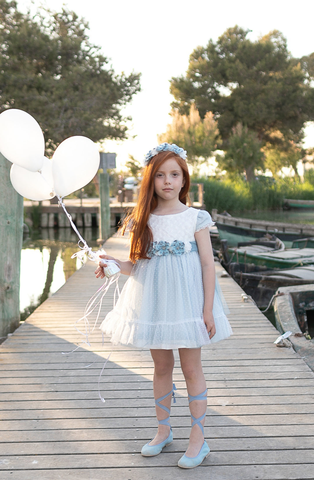Girls White and Blue Dress